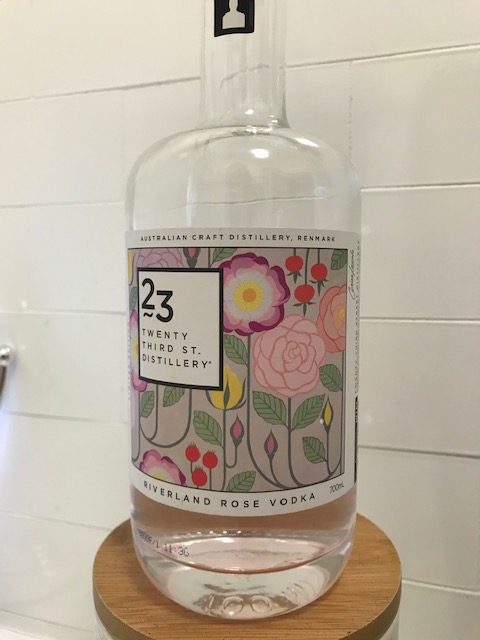A limited edition 40% Alc./Vol cane based vodka that is small copper pot distilled. This has an alluring pink tinge, a result of the infusion of red “Mr Lincoln” rose petals from South Australian Rustons Roses, Riverland. The flavour is further enhanced with other mixed blooms and organic hibiscus petal. This is an aromatic drink. A shot of this imparts a mild rose water flavour, with a slight, almost bitter or astringent, burn up front. The flavour in interesting, and the taste was scored highly by many who sampled it. Dr Vodka found the bitter aftertaste too robust and impactful.